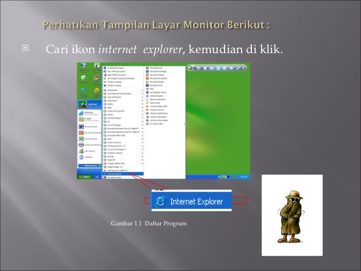 - 4. Cari ikon internet explorer, kemudian di klik. c Gambar 1.1 Daftar Program